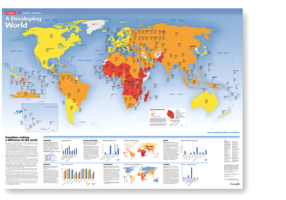 Development education information broad-sheet in 3 separate languages, Canadian International Development Agency.